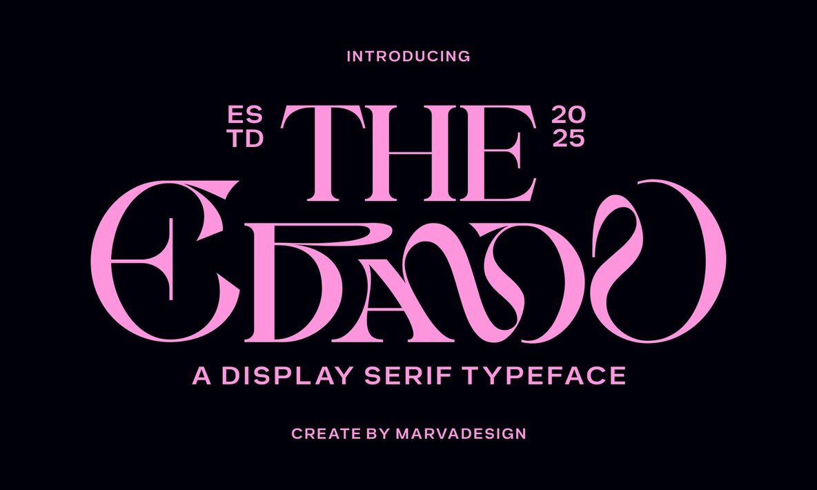 Ebamo is a captivating display serif typeface that fuses boldness with an avant-garde aesthetic. With its striking high contrast between thick and thin strokes, this typeface introduces a blend of movement and elegance to any design. The smooth curves complement sharp edges, making Ebamo a memorable choice for various projects.